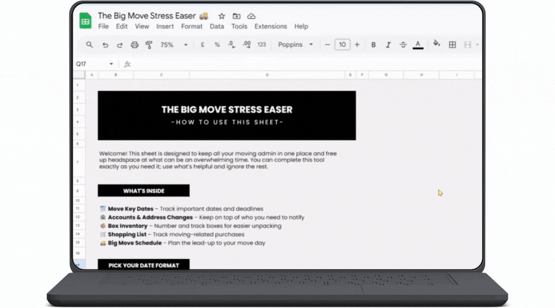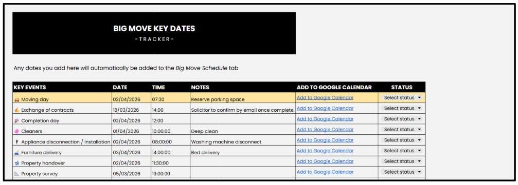 A simple, interactive spreadsheet to keep all the essential details in one place. Because your move needn’t take up so much headspace…